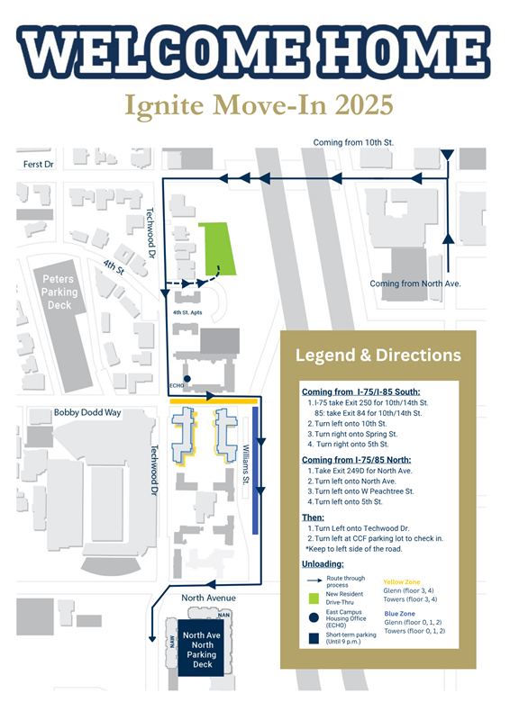 • To make your move-in as smooth as possible, see our Move-in Tips page. If you have additional questions, call the Housing & Residence Life team at 404.894.2470.